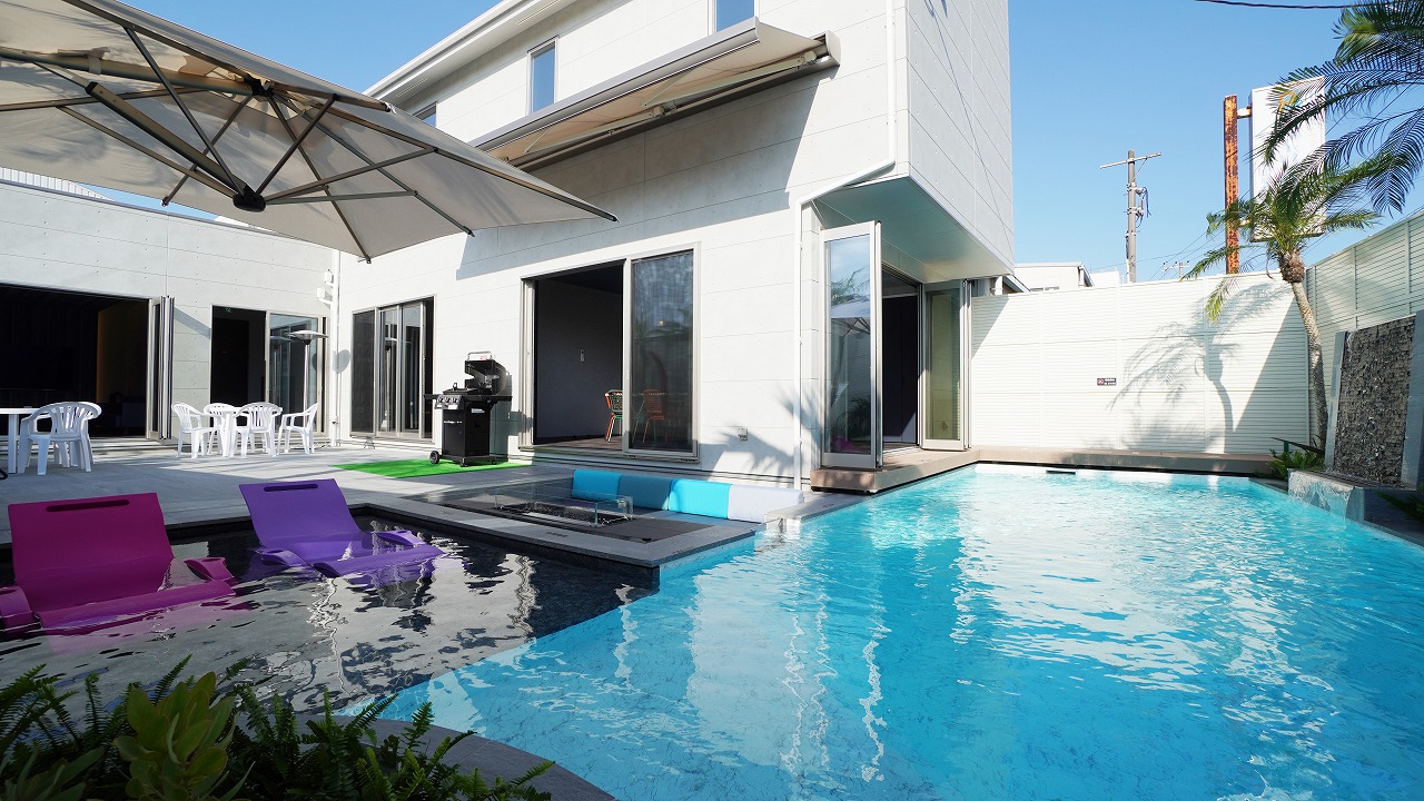 5LDK、木造2階建て、延べ床面積:151㎡、プール・デッキテラス・BBQテラス・バーラウンジ・ラナイ、宿泊定員:最大8名